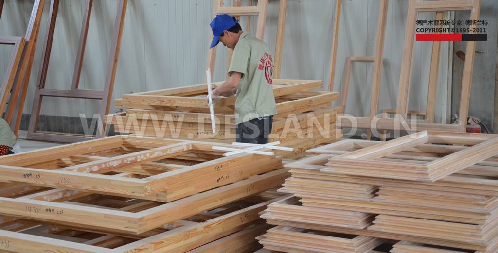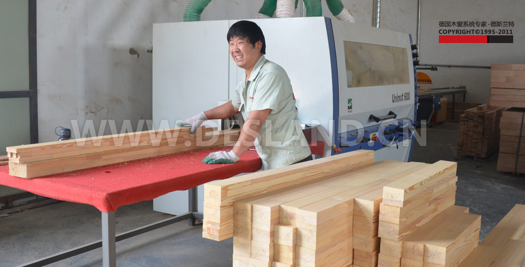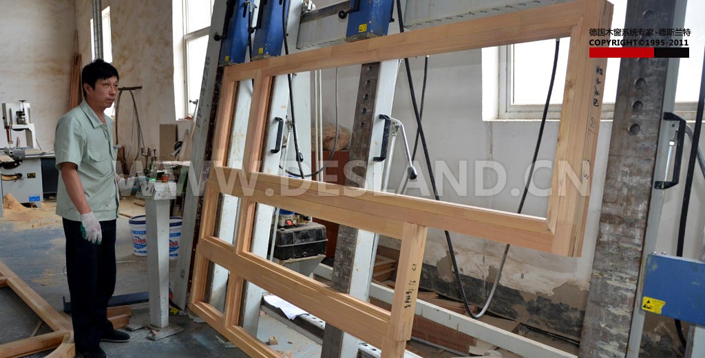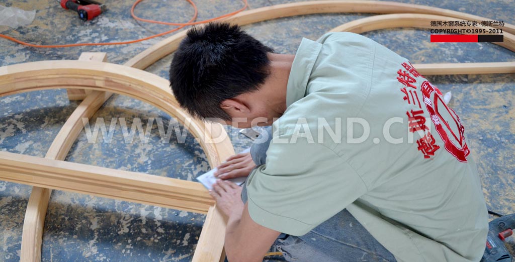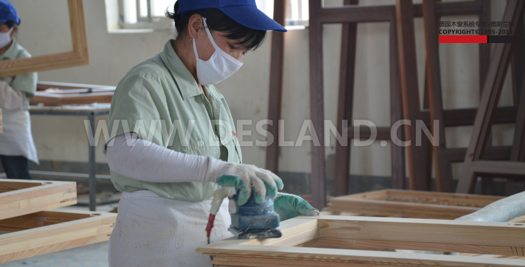 德斯兰特铝包木门窗打磨细节,完成之后指尖滑过,大有肤如凝脂之意。