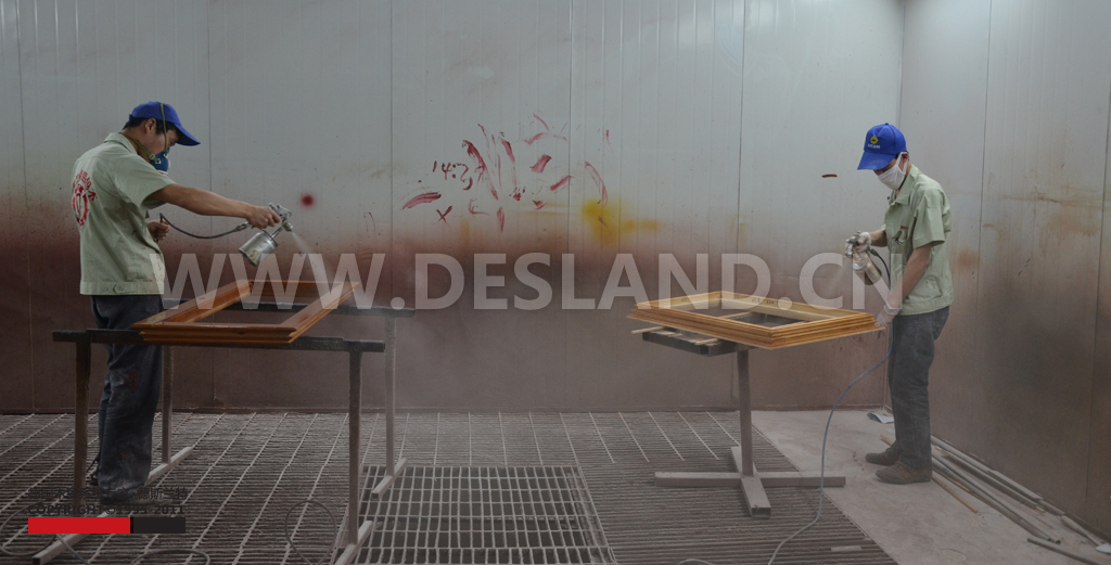德斯兰特铝包木门窗自动喷漆生产线。