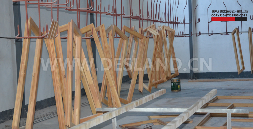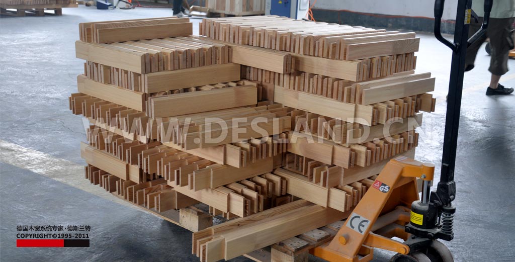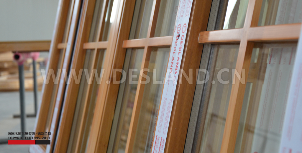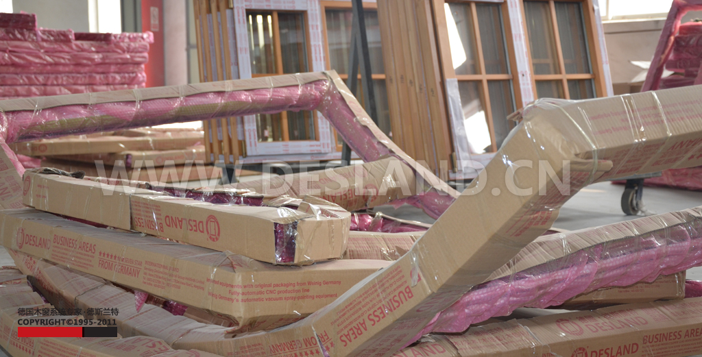 德斯兰特铝包木门窗成品,这些还未进行最后的组装。